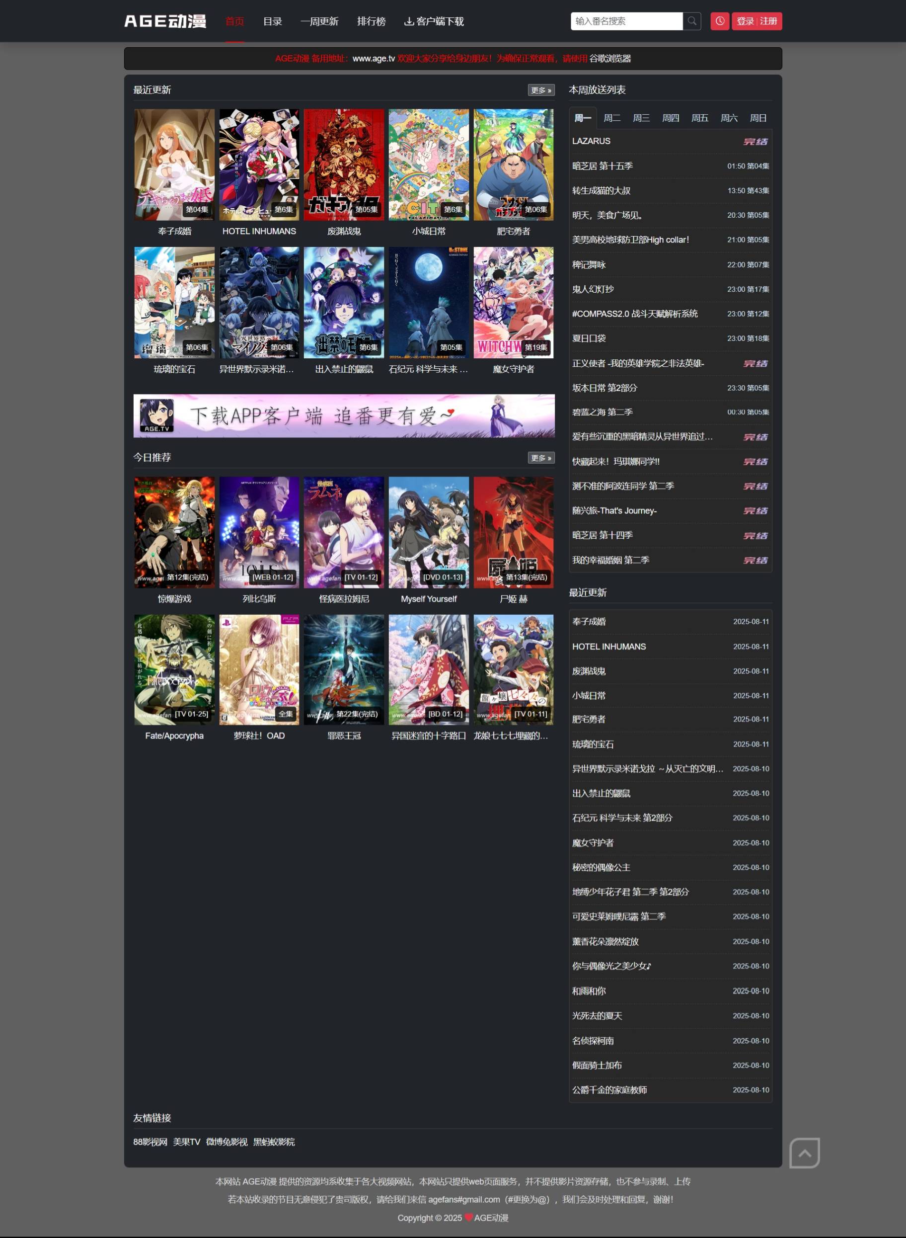 AGE动漫也是一家提供免费动漫观看的网站,该网站提供挺全面的各类动漫资源,并且也是支持历史观看记录以及新番时间表的。大家可以在该网站查找自己喜欢的动漫资源进行观看,AGE动漫提供挺多的播放源,大家可以根据播放情况,切换速度快稳定一些的播放源进行观看。